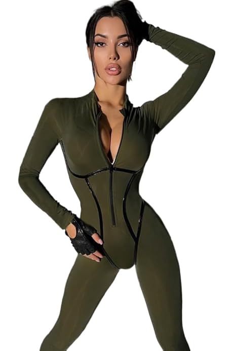Floerns Women S Biker Shorts One Piece Zip Up Cut Out Back Romper Jumpsuit Army Green Xs Clothing Shoes Jewelry Amazon Com